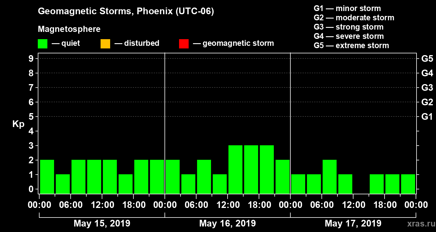 Geomagnetic storms in Phoenix in May 2019