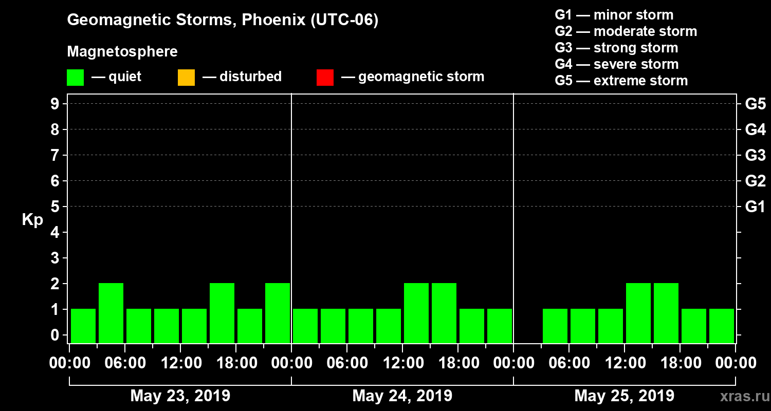 Geomagnetic storms in Phoenix in May 2019