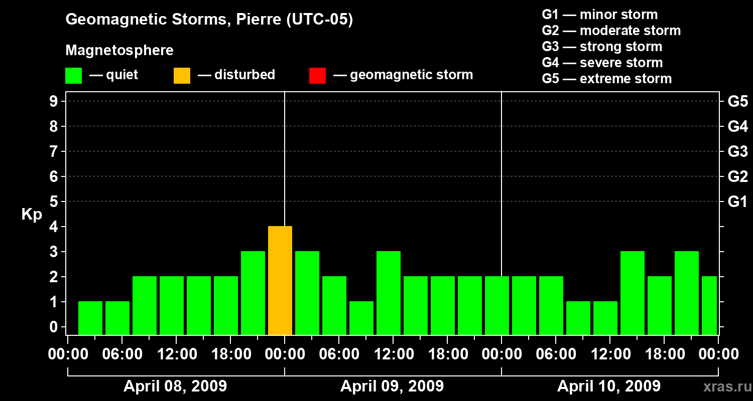 Geomagnetic storms in Pierre — Apr 10, 2009