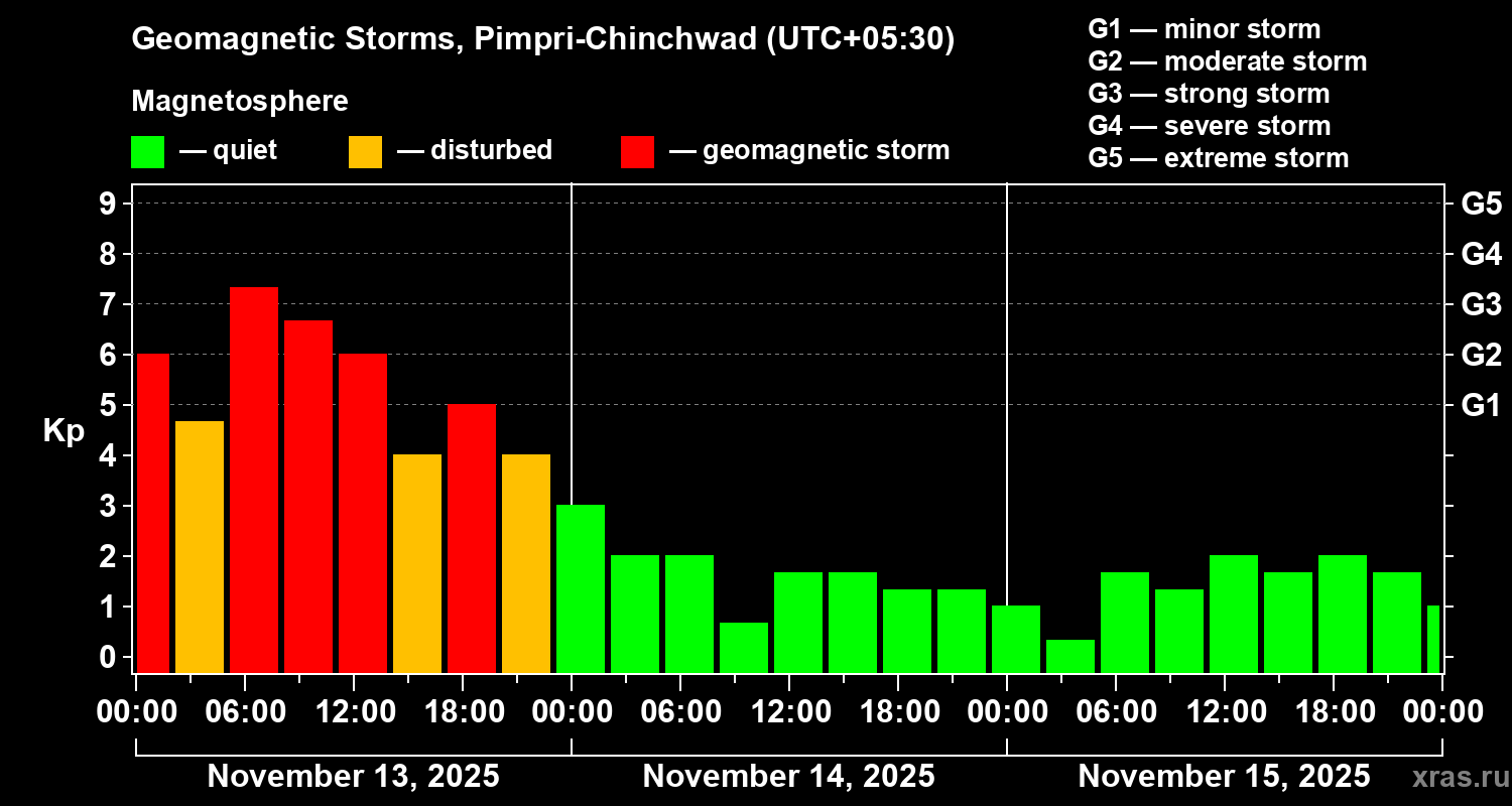 Geomagnetic storms in Pimpri-Chinchwad in November 2025