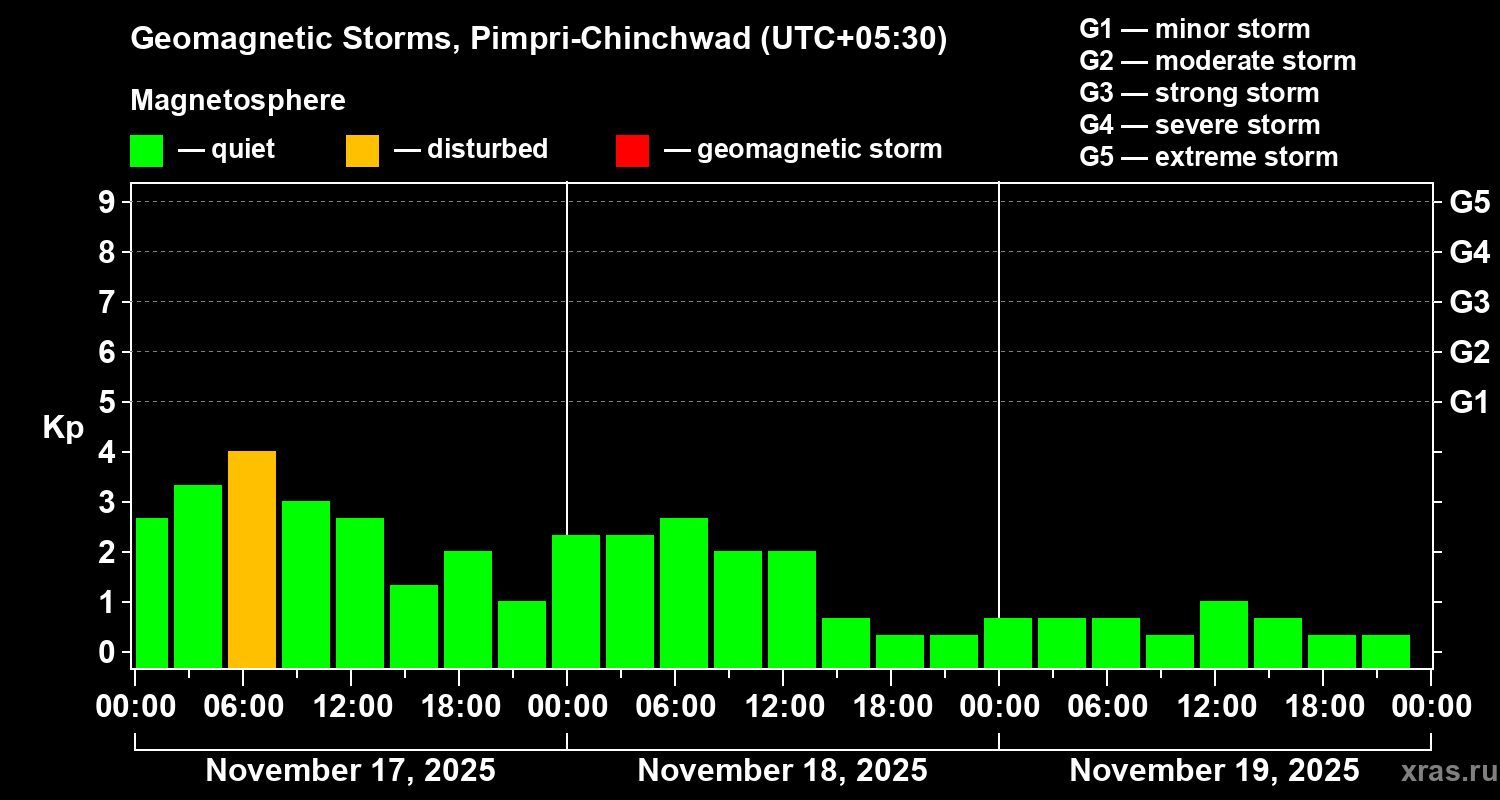 Geomagnetic storms in Pimpri-Chinchwad in November 2025