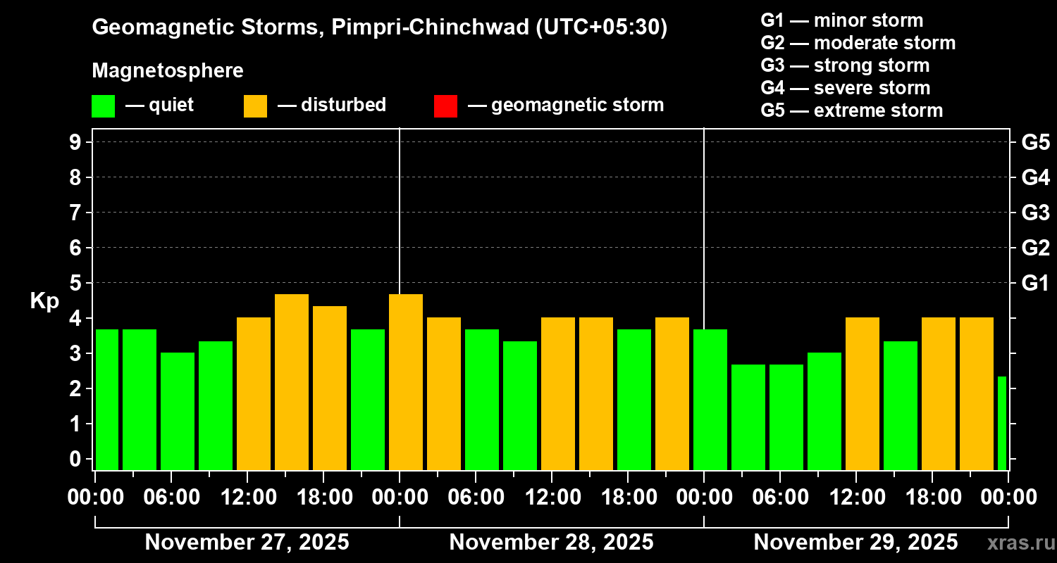 Geomagnetic storms in Pimpri-Chinchwad in November 2025