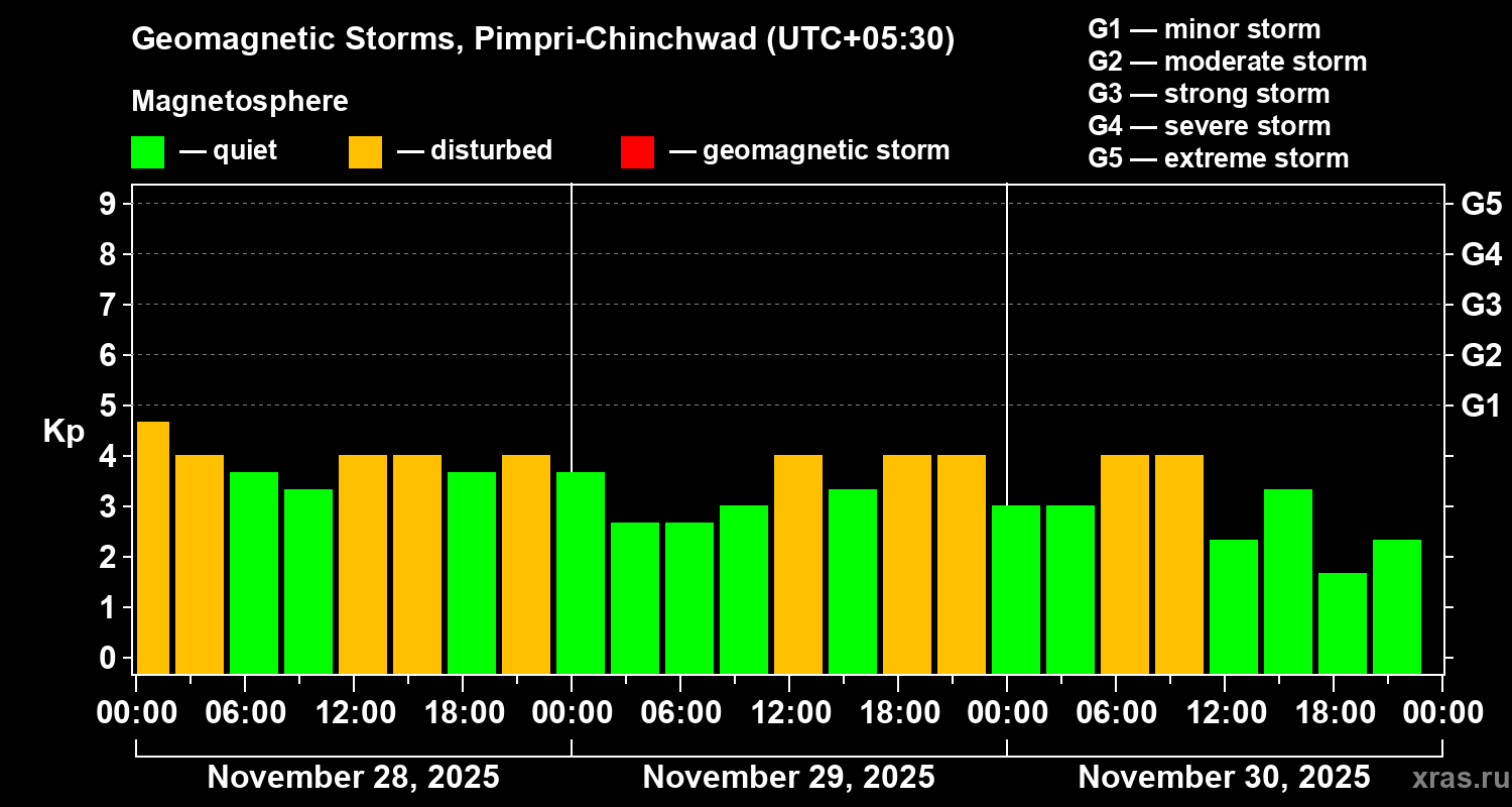 Geomagnetic storms in Pimpri-Chinchwad in November 2025