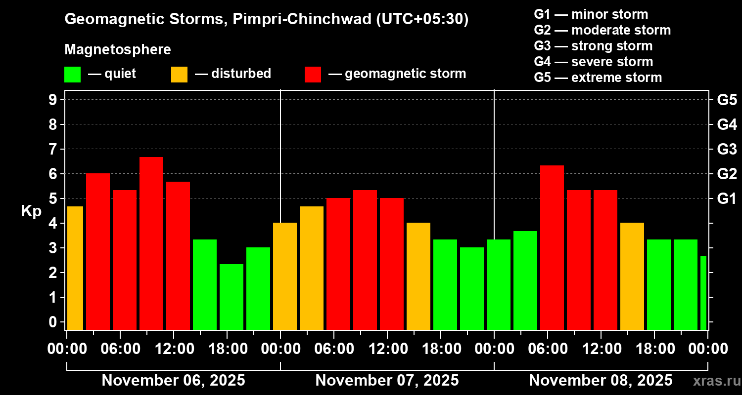 Geomagnetic storms in Pimpri-Chinchwad in November 2025