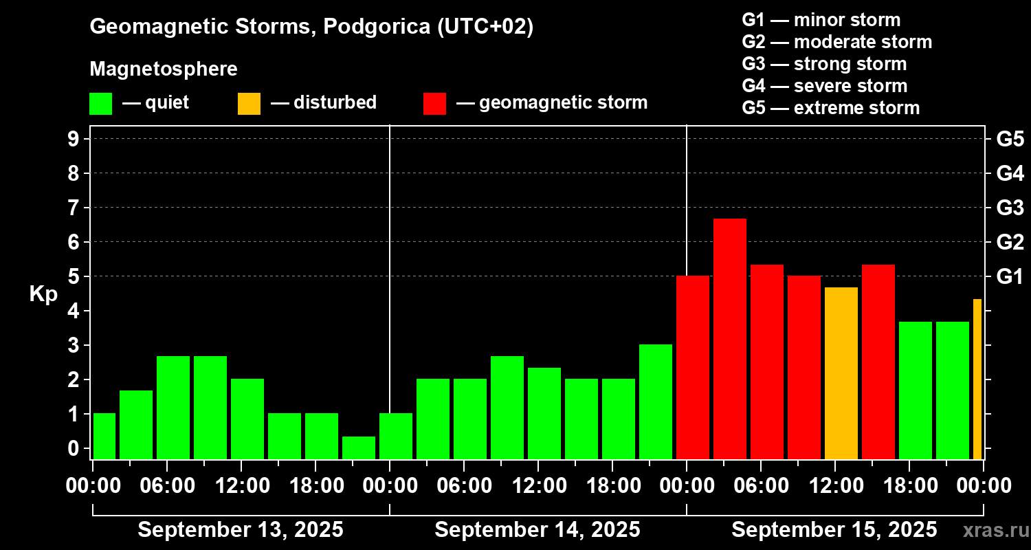 Geomagnetic storms in Podgorica — Sep 15, 2025