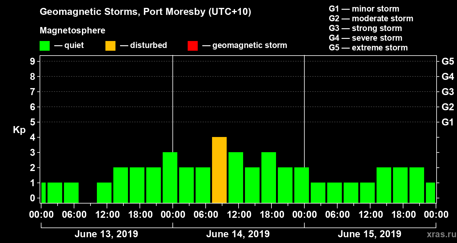 Geomagnetic storms in Port Moresby on Jun 15, 2019