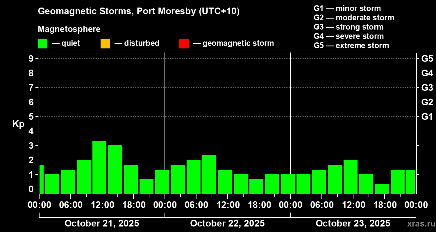 Geomagnetic storms in Port Moresby — Oct 23, 2025