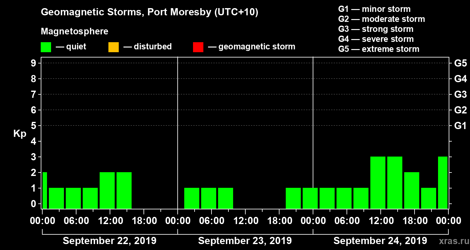 Geomagnetic storms in Port Moresby in September 2019