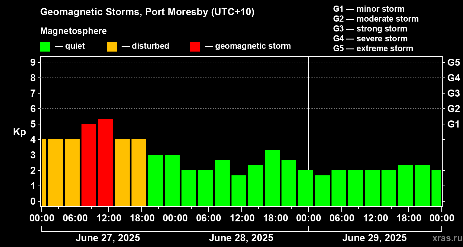 Geomagnetic storms in Port Moresby — Jun 29, 2025