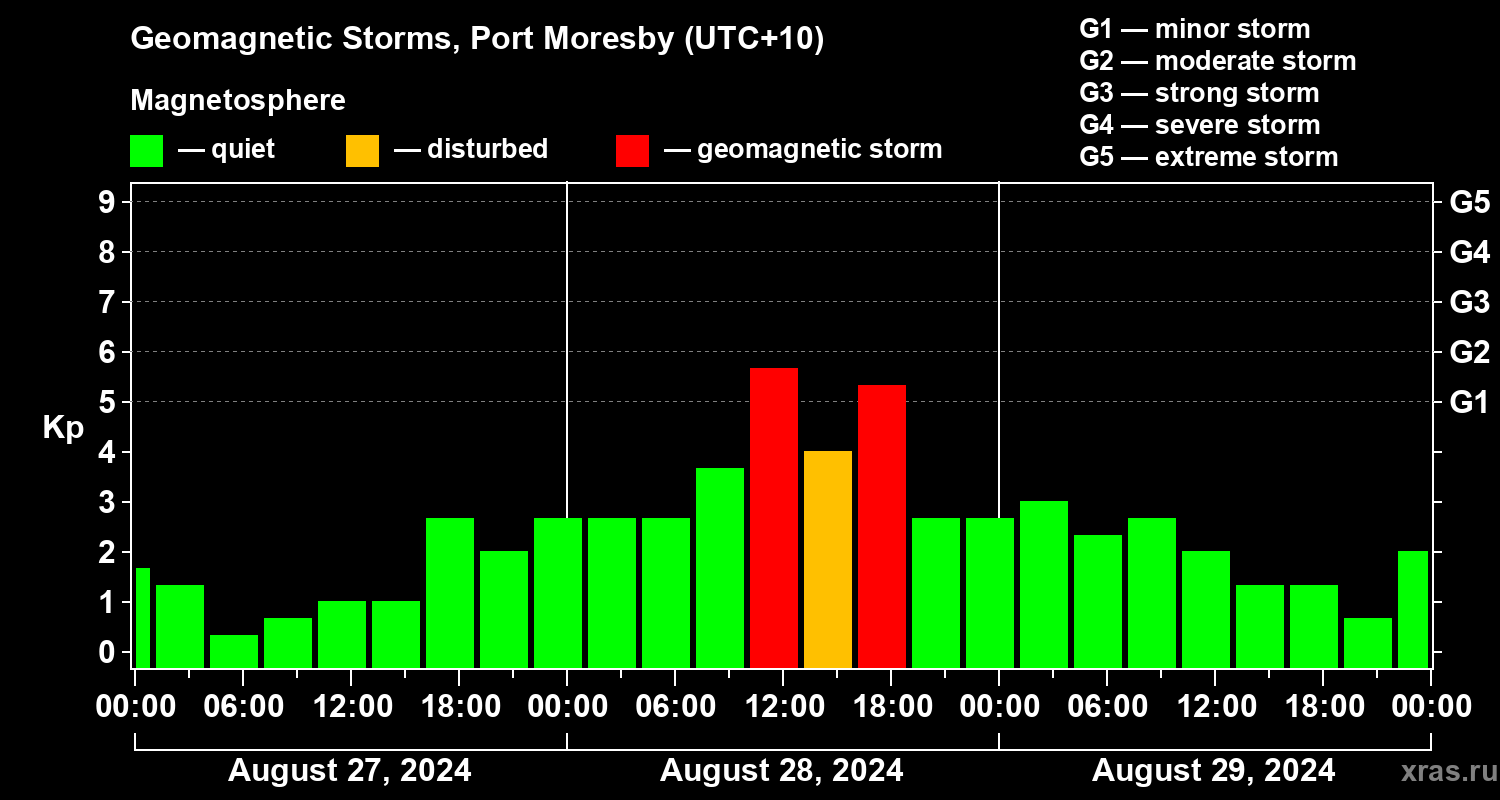 Geomagnetic storms in Port Moresby — Aug 29, 2024