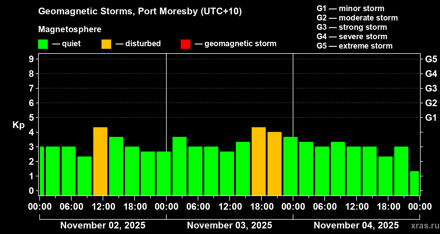 Geomagnetic storms in Port Moresby — Nov 04, 2025