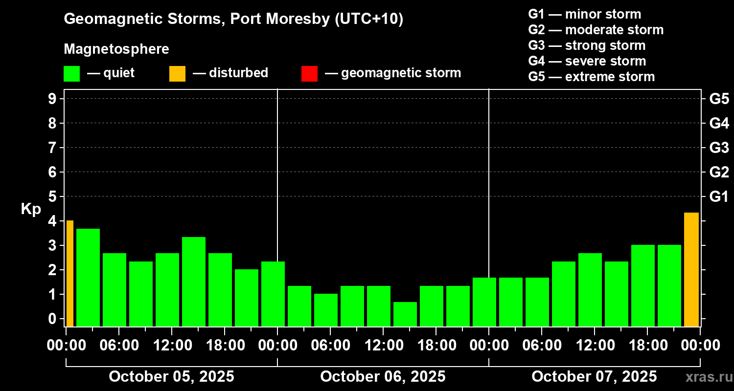 Geomagnetic storms in Port Moresby — Oct 07, 2025