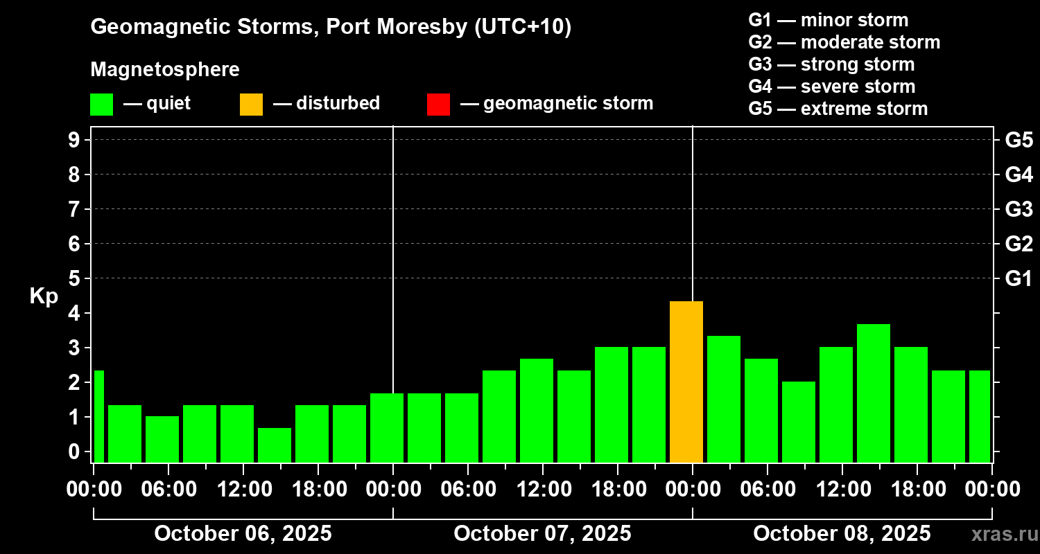 Geomagnetic storms in Port Moresby — Oct 08, 2025