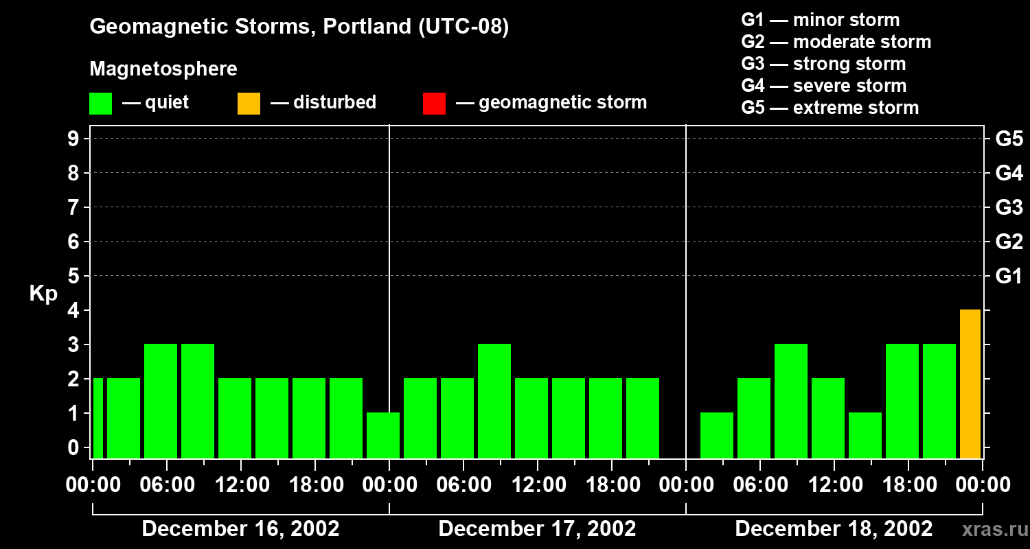Changes in the geomagnetic index Kp from December 16 to 18, 2002 for mid latitudes
