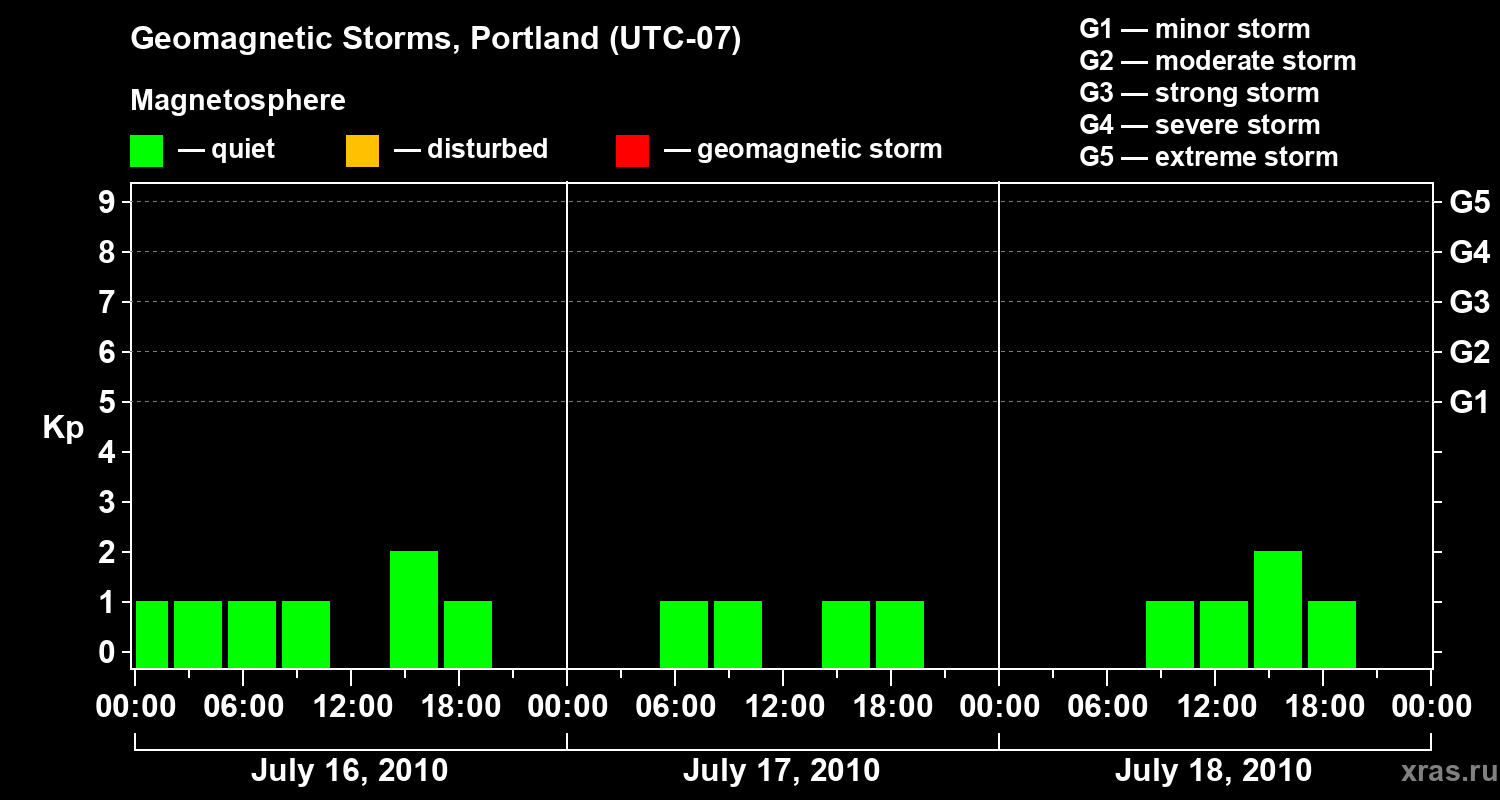 Geomagnetic storms in Portland in July 2010
