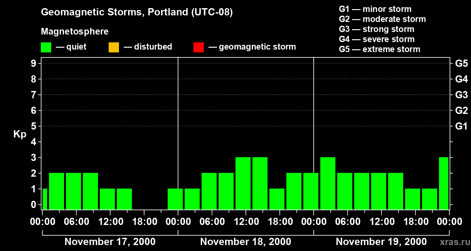 Changes in the geomagnetic index Kp from November 17 to 19, 2000 for mid latitudes