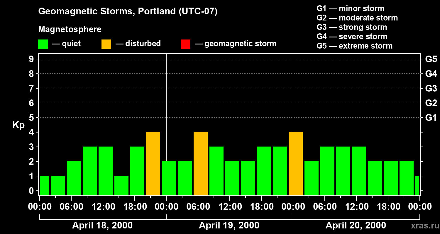 Geomagnetic storms in Portland on Apr 20, 2000