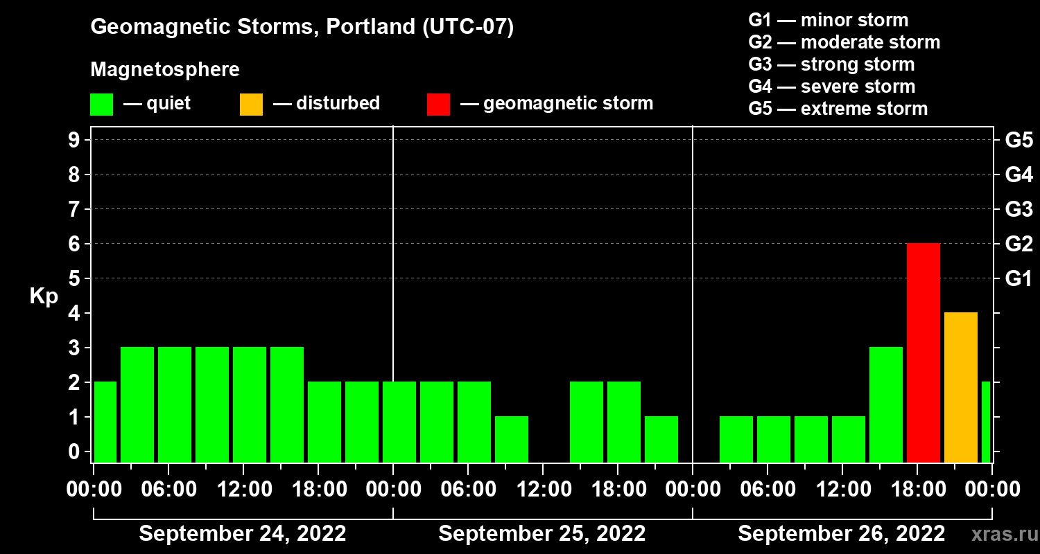 Changes in the geomagnetic index Kp from September 24 to 26, 2022 for mid latitudes