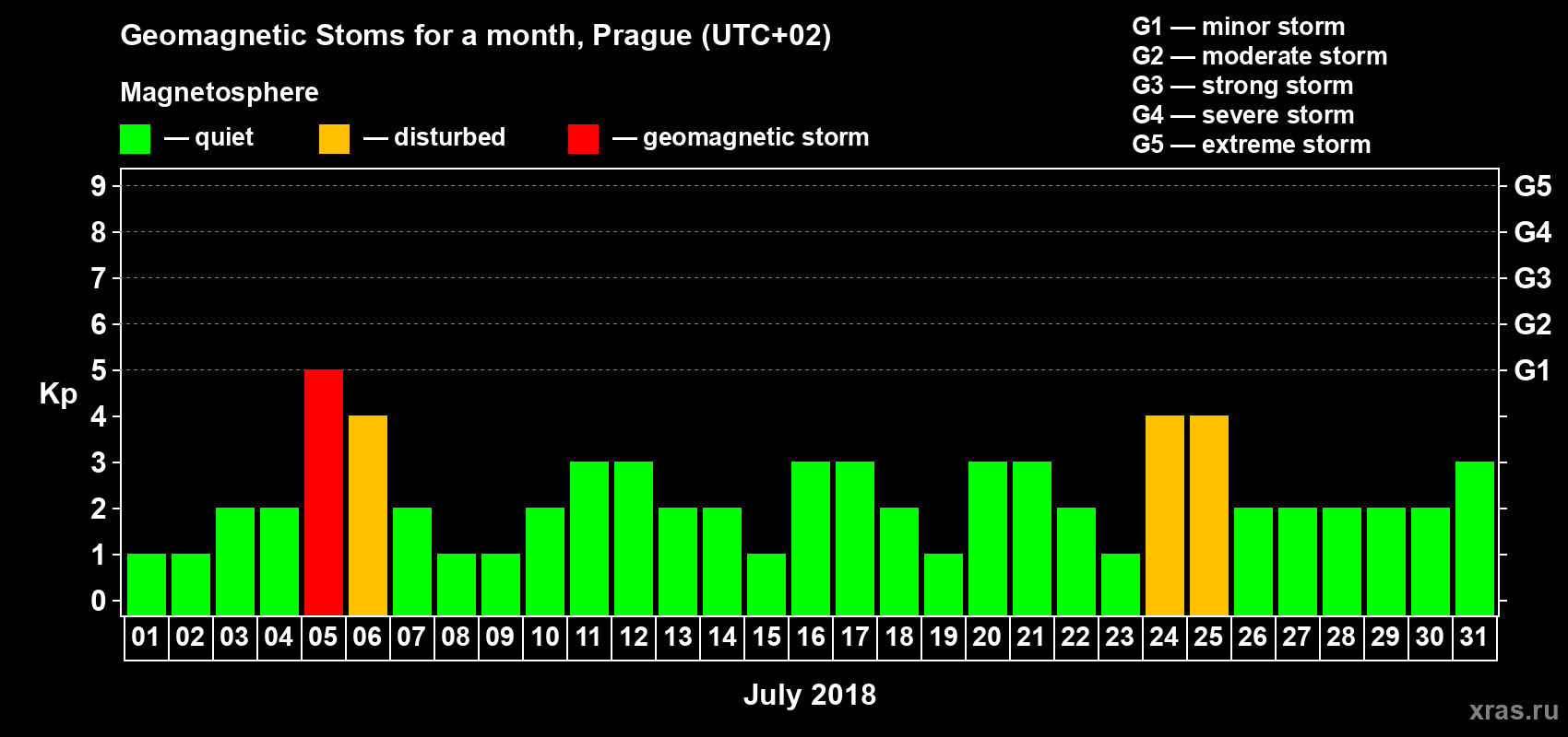 Geomagnetic storms in Prague — Jul 31, 2018