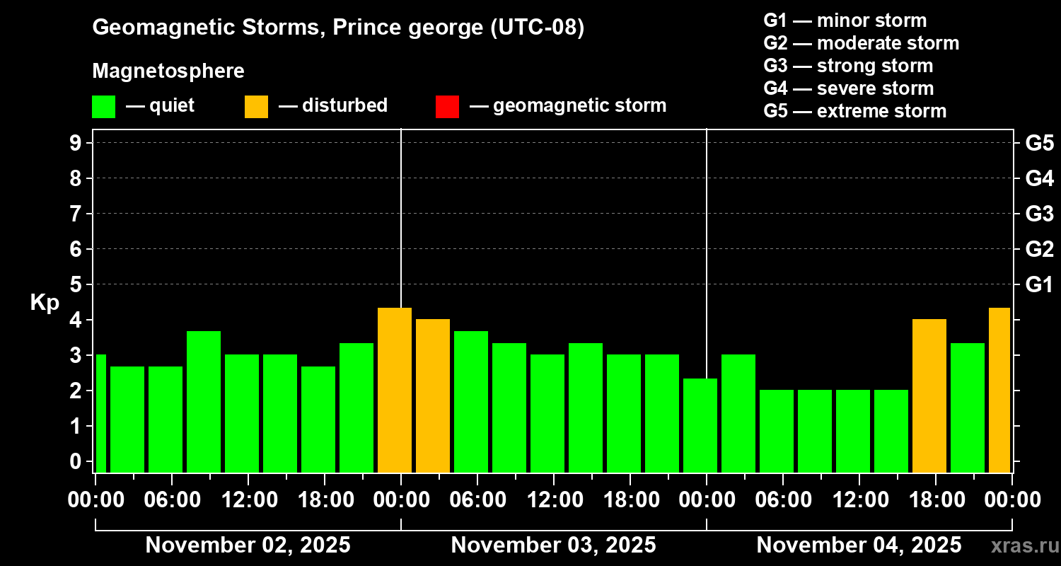 Geomagnetic storms in Prince george on Nov 04, 2025