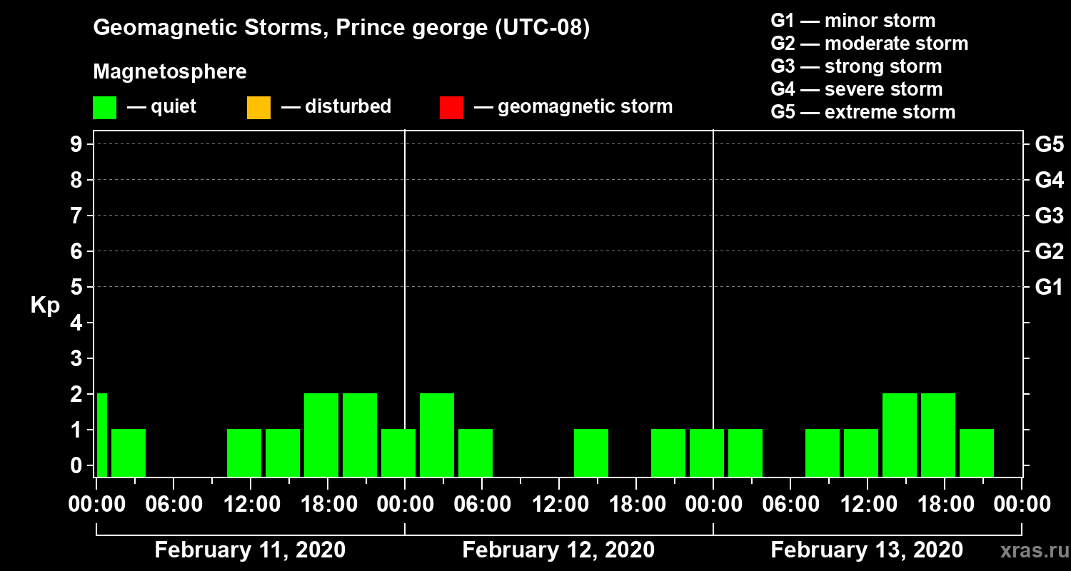 Geomagnetic storms in Prince george — Feb 13, 2020