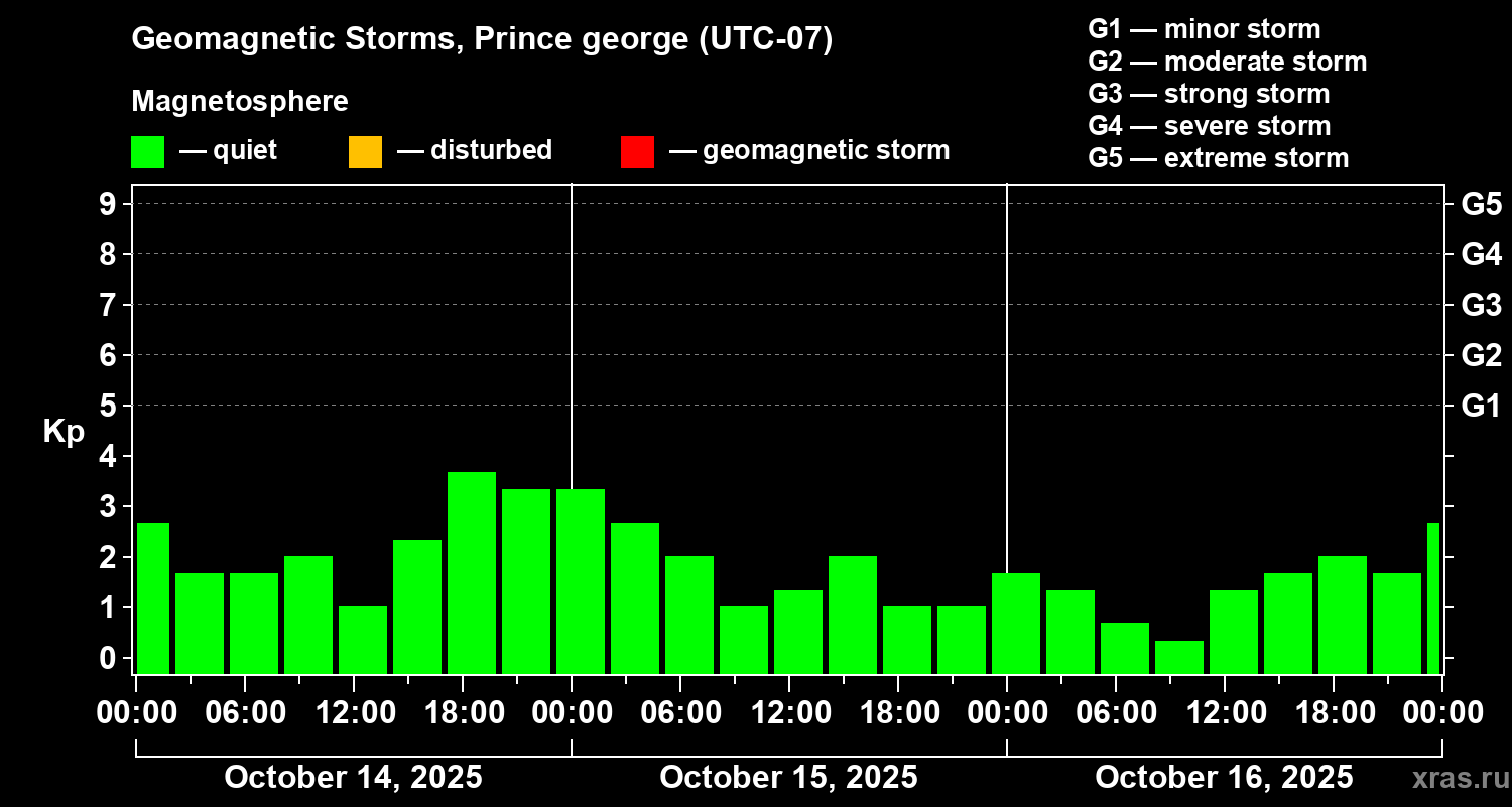 Geomagnetic storms in Prince george — Oct 16, 2025
