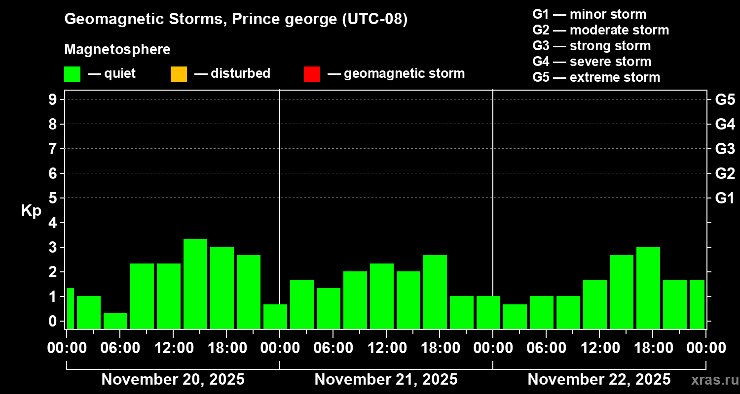 Geomagnetic storms in Prince george on Nov 22, 2025