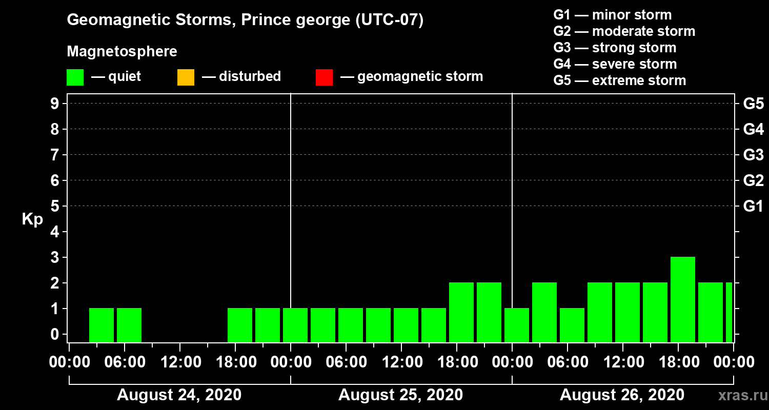 Geomagnetic storms in Prince george — Aug 26, 2020
