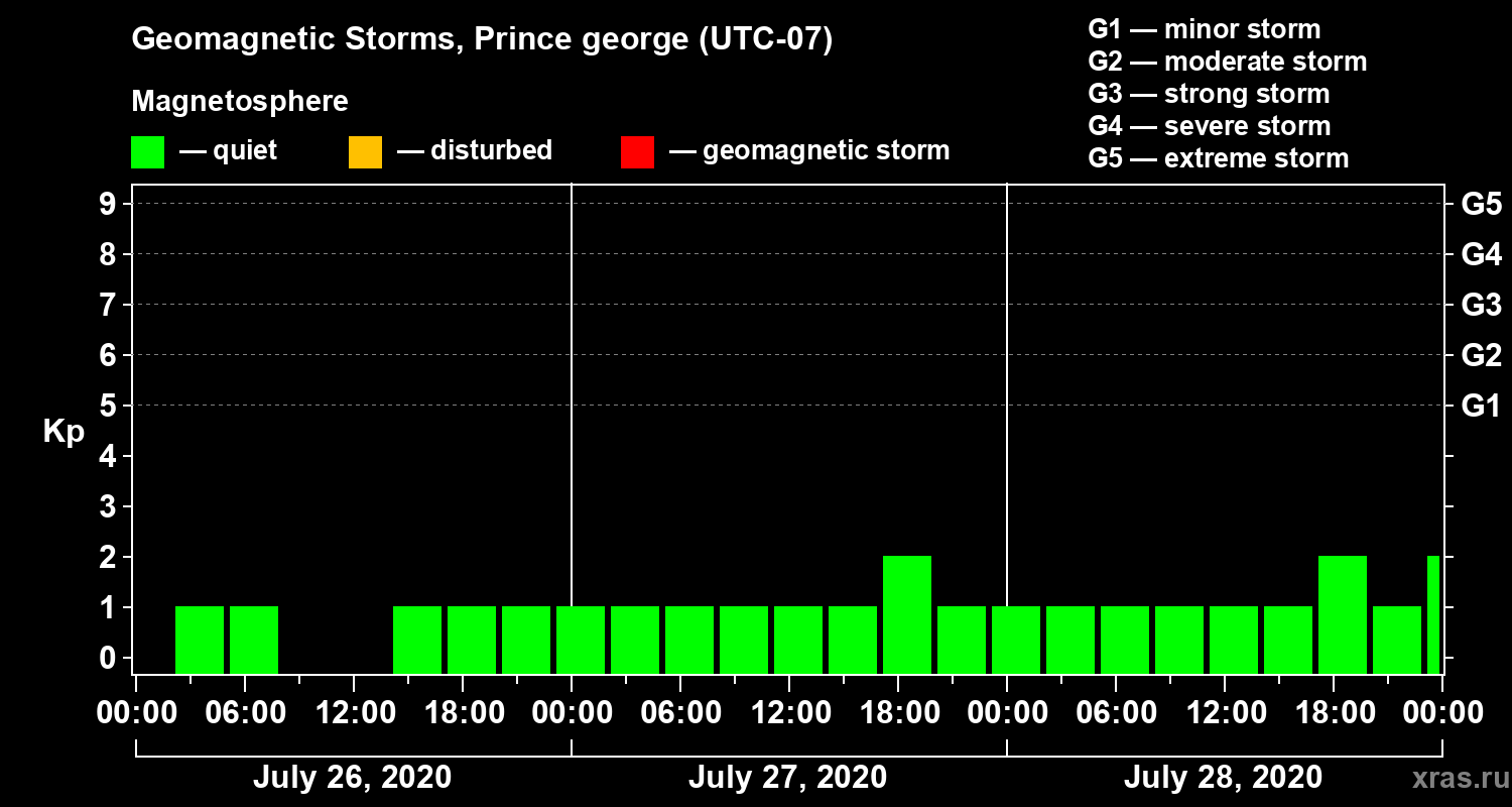 Geomagnetic storms in Prince george — Jul 28, 2020