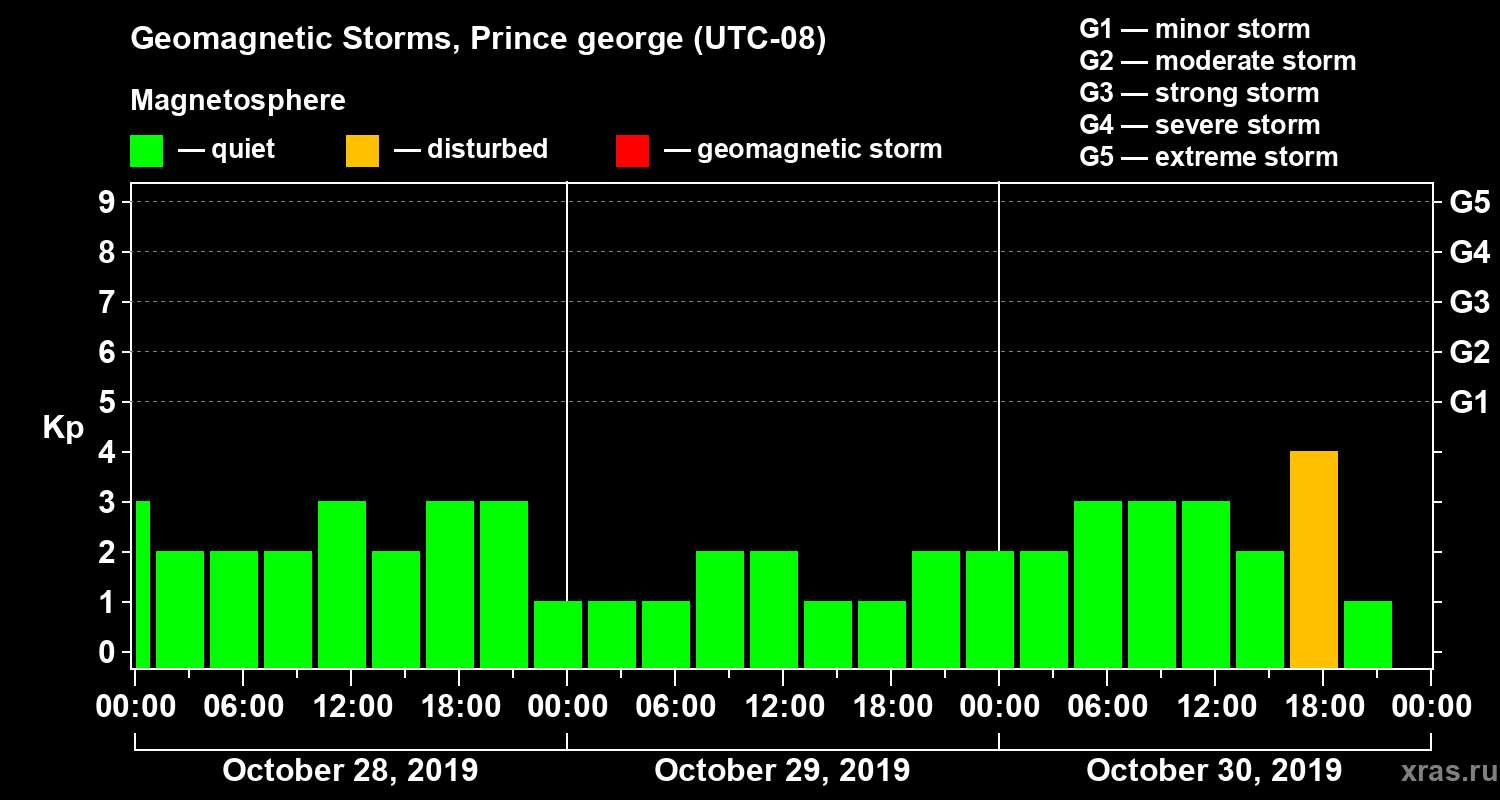 Geomagnetic storms in Prince george — Oct 30, 2019