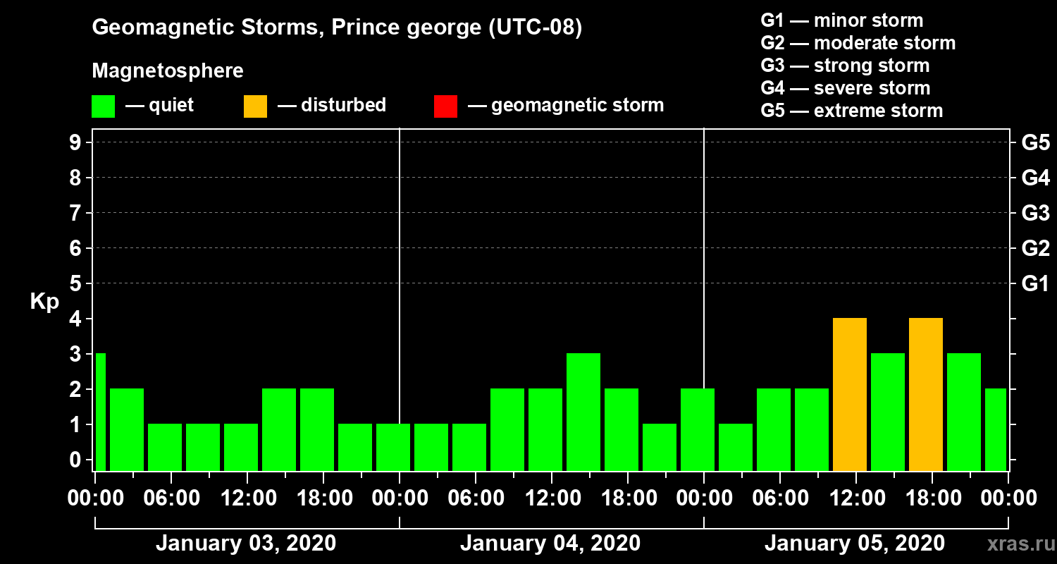 Geomagnetic storms in Prince george — Jan 05, 2020