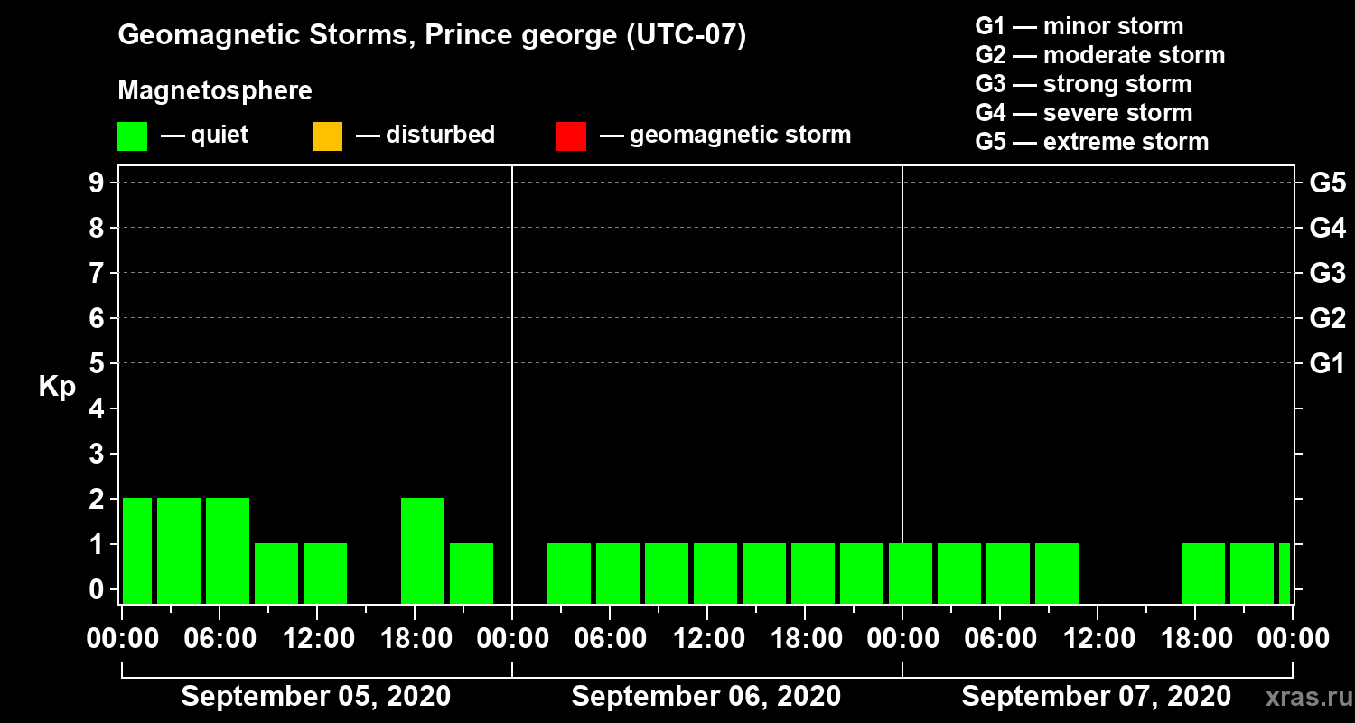 Geomagnetic storms in Prince george on Sep 07, 2020