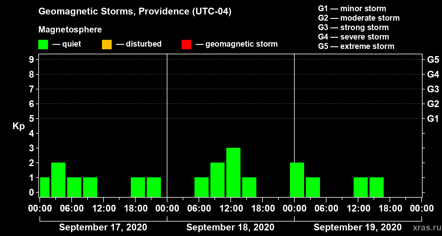 Changes in the geomagnetic index Kp from September 17 to 19, 2020 for mid latitudes