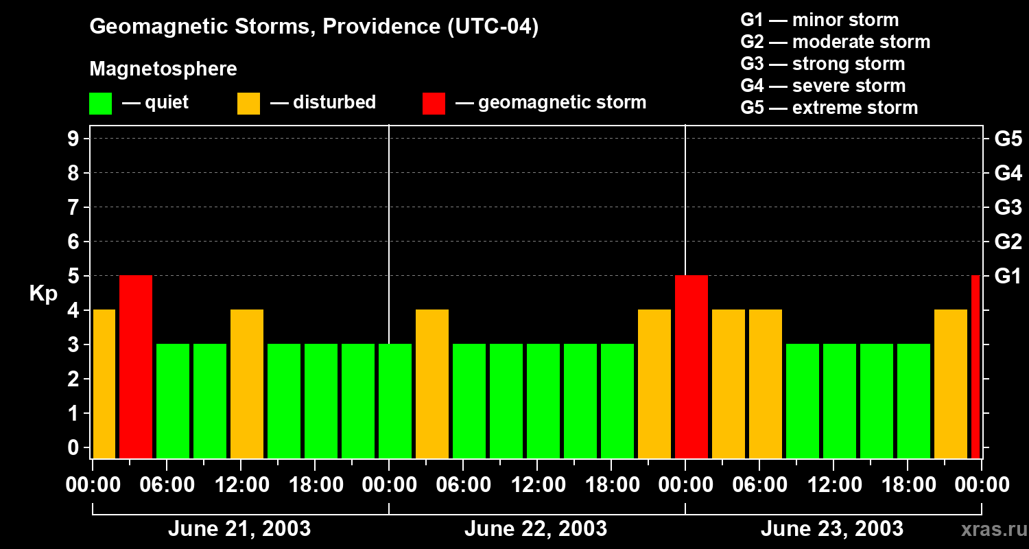Geomagnetic storms in Providence on Jun 23, 2003