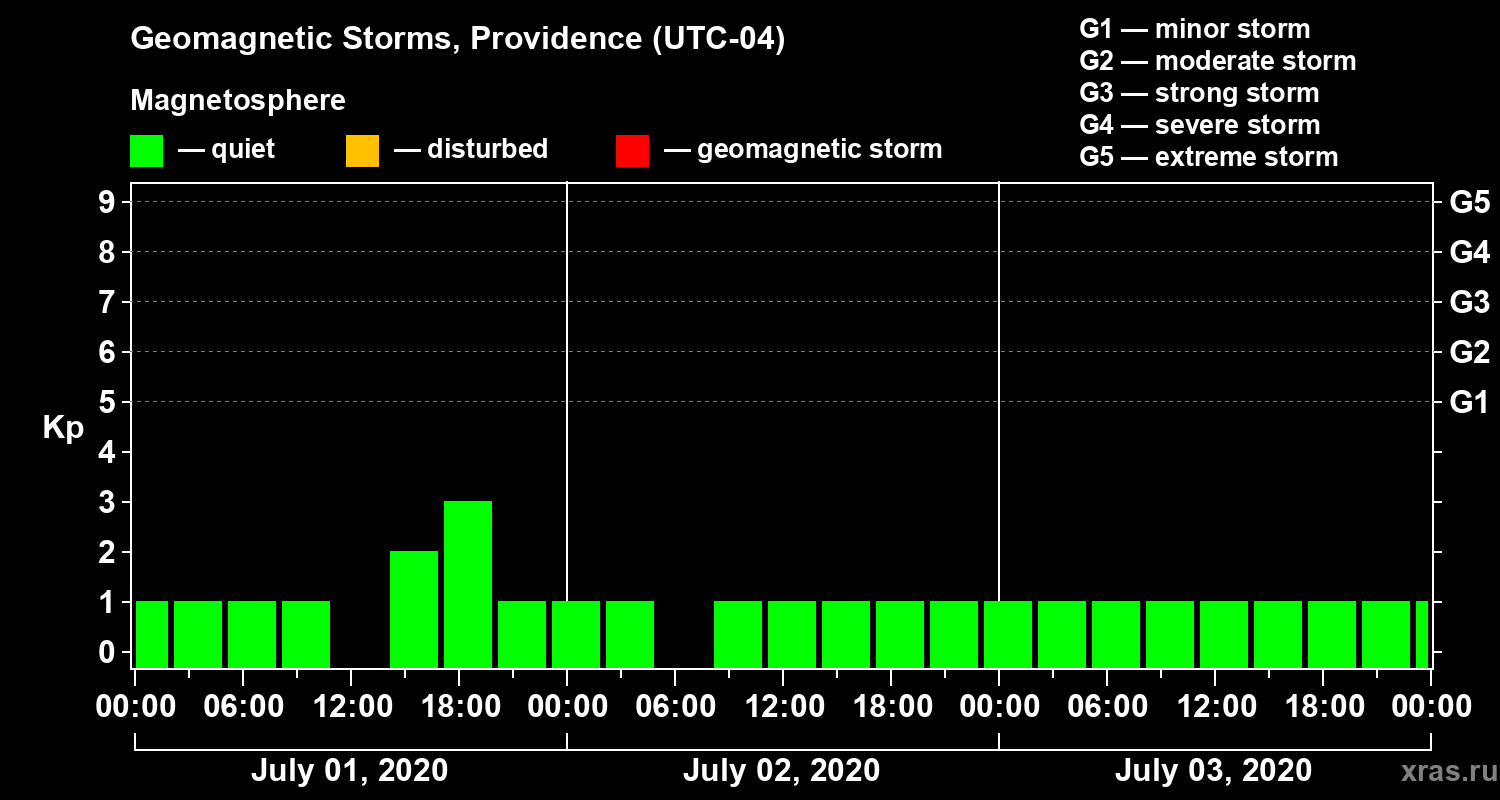 Changes in the geomagnetic index Kp from July 1 to 3, 2020 for mid latitudes