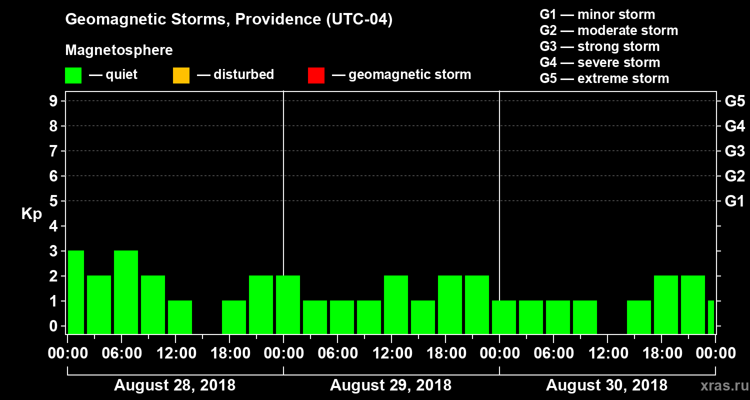Changes in the geomagnetic index Kp from August 28 to 30, 2018 for mid latitudes