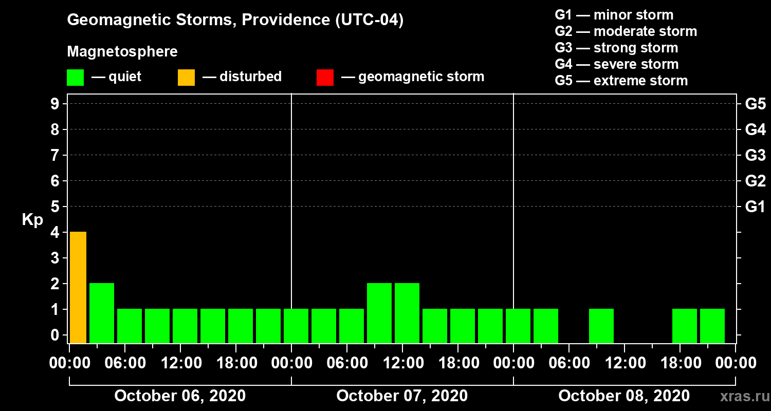 Changes in the geomagnetic index Kp from October 6 to 8, 2020 for mid latitudes