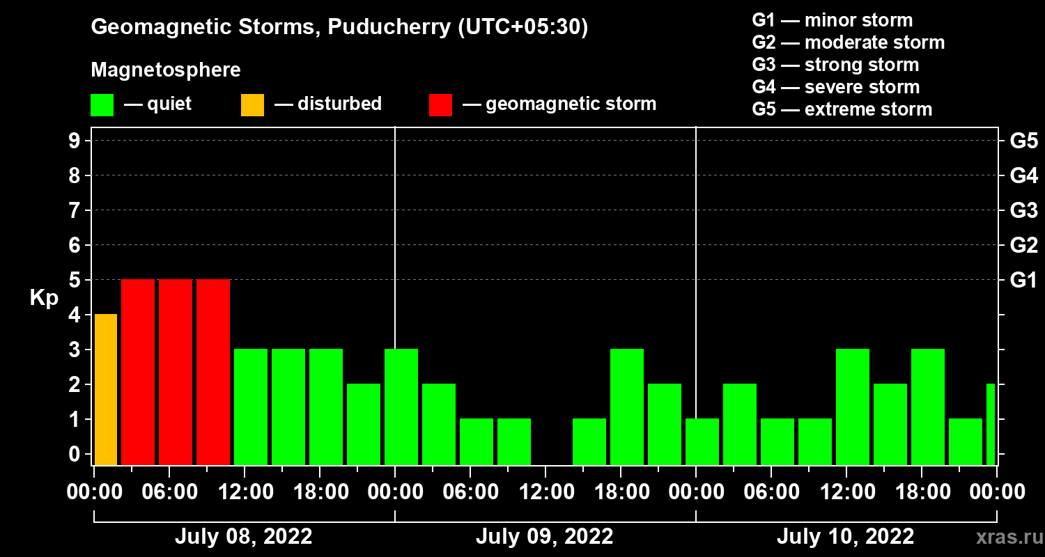 Geomagnetic storms in Puducherry — Jul 10, 2022