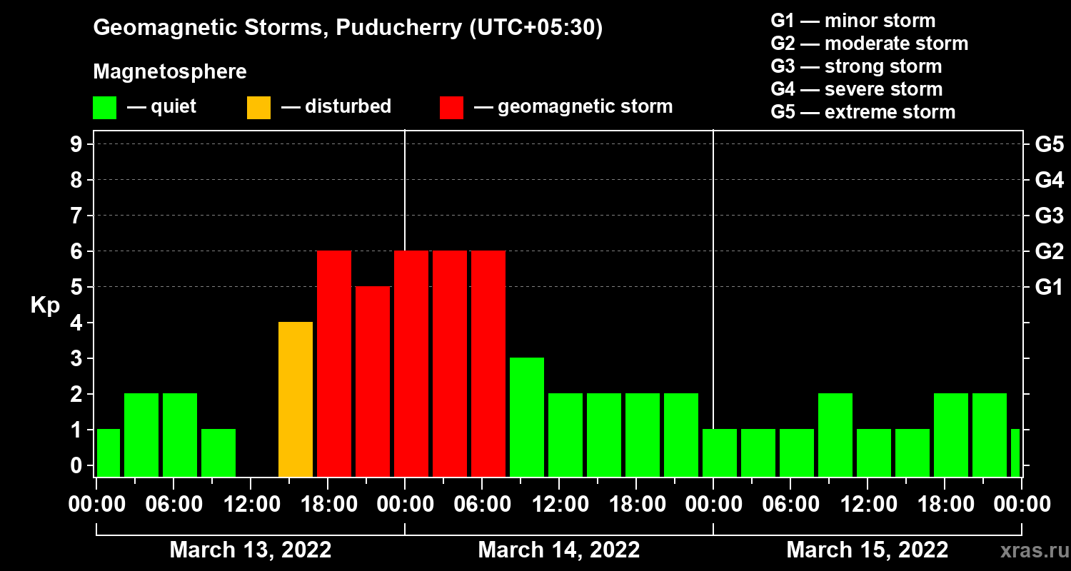 Geomagnetic storms in Puducherry — Mar 15, 2022