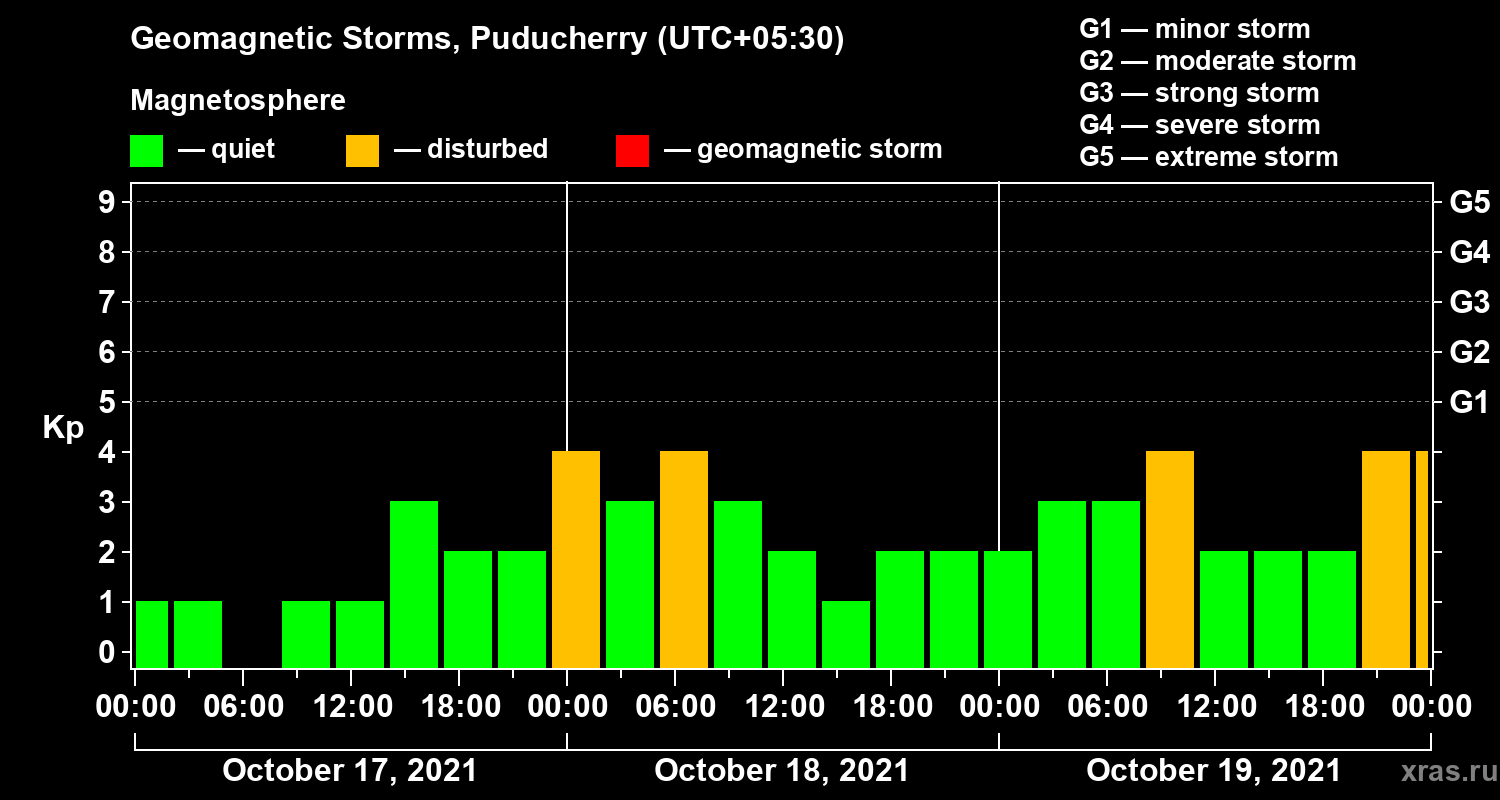 Geomagnetic storms in Puducherry in October 2021
