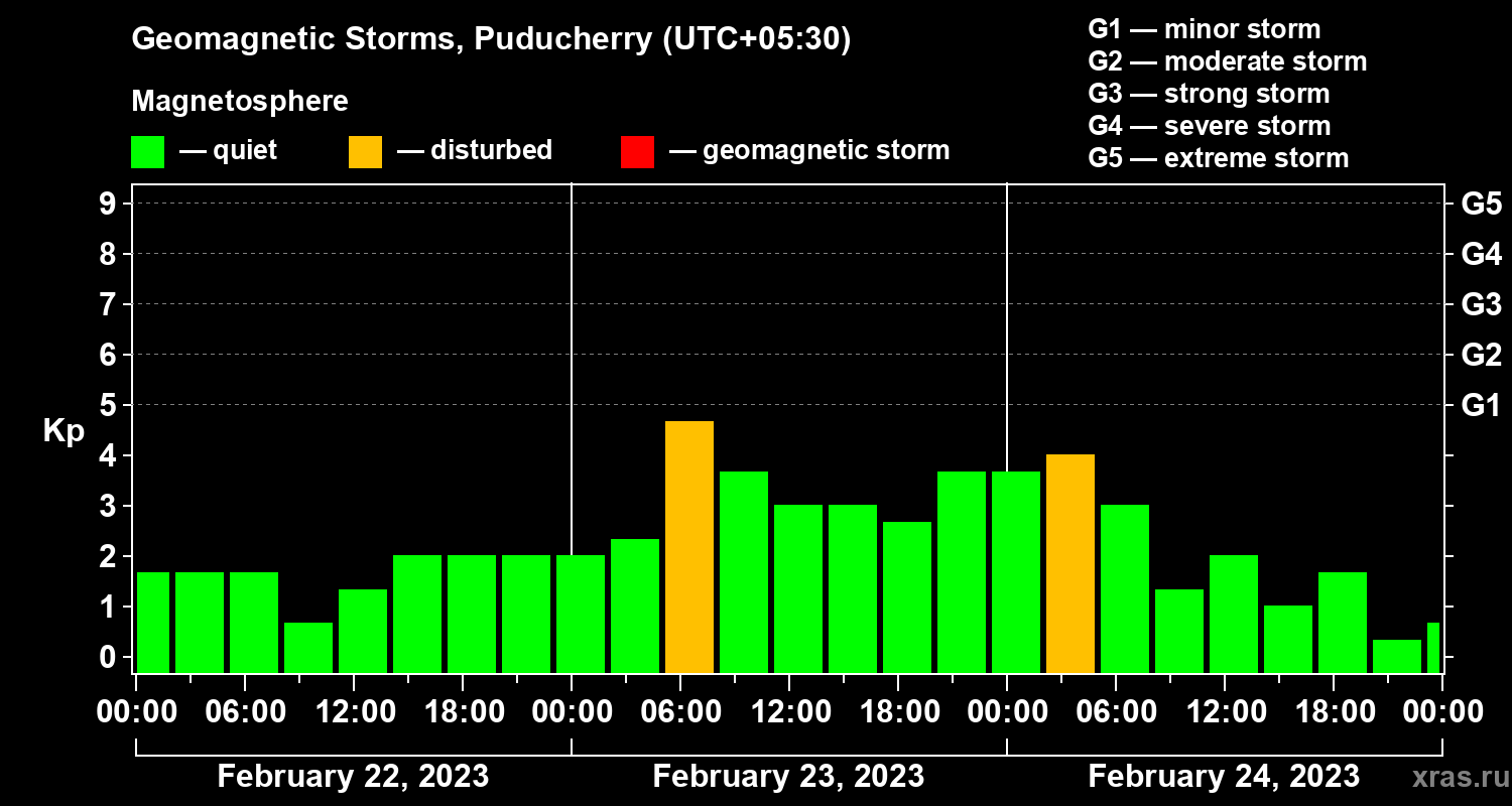 Geomagnetic storms in Puducherry — Feb 24, 2023