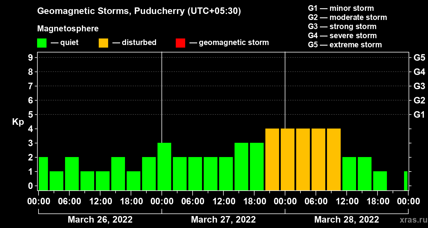 Geomagnetic storms in Puducherry — Mar 28, 2022