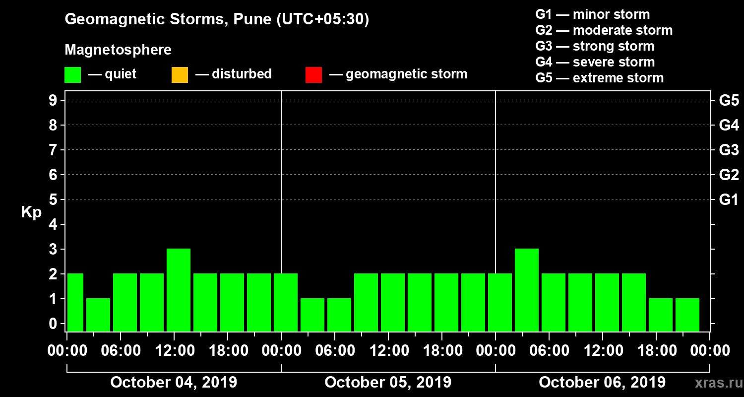 Changes in the geomagnetic index Kp from October 4 to 6, 2019 for mid latitudes