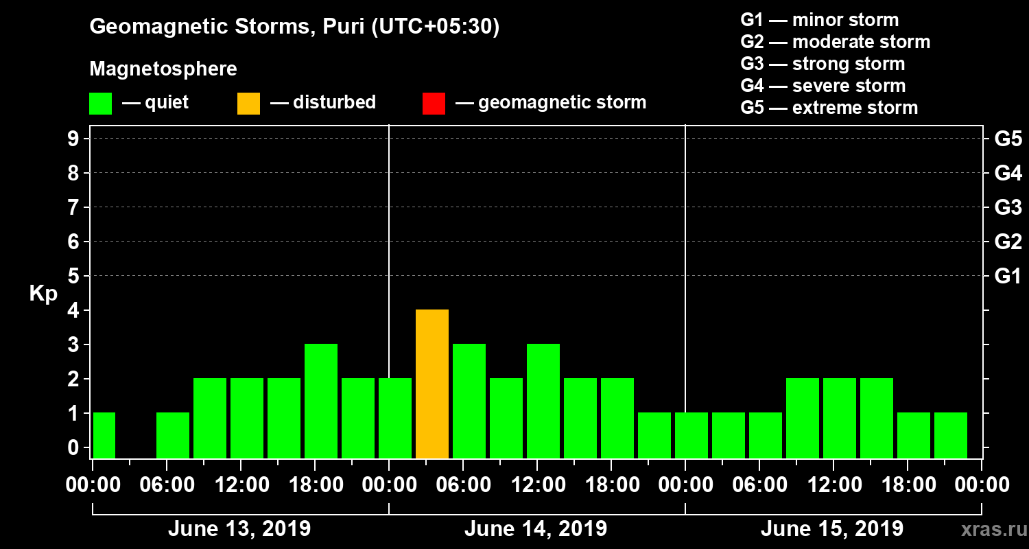 Geomagnetic storms in Puri in June 2019