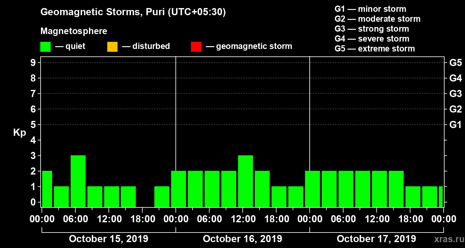 Changes in the geomagnetic index Kp from October 15 to 17, 2019 for mid latitudes