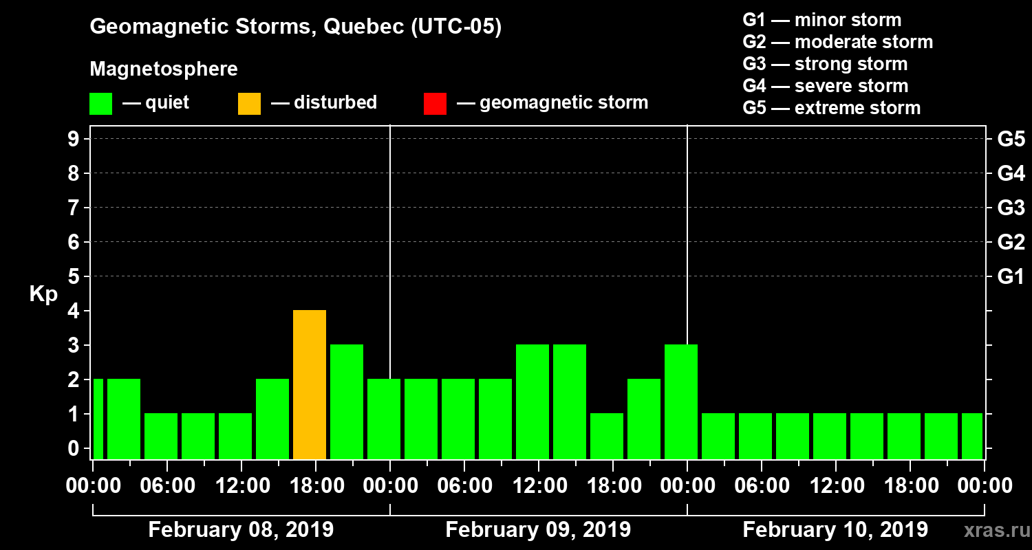 Geomagnetic storms in Quebec on Feb 10, 2019