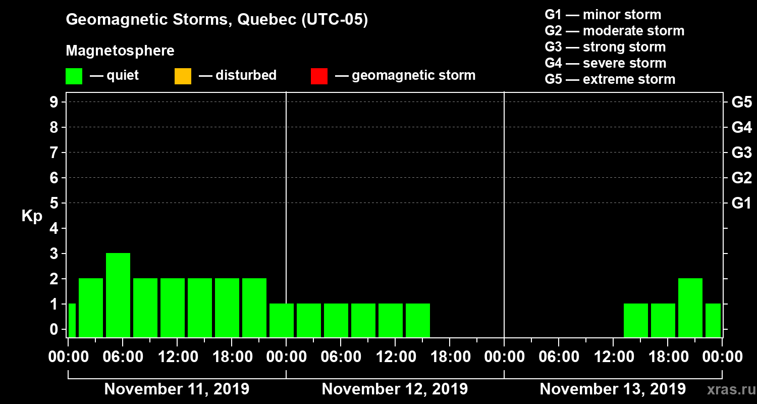 Geomagnetic storms in Quebec on Nov 13, 2019