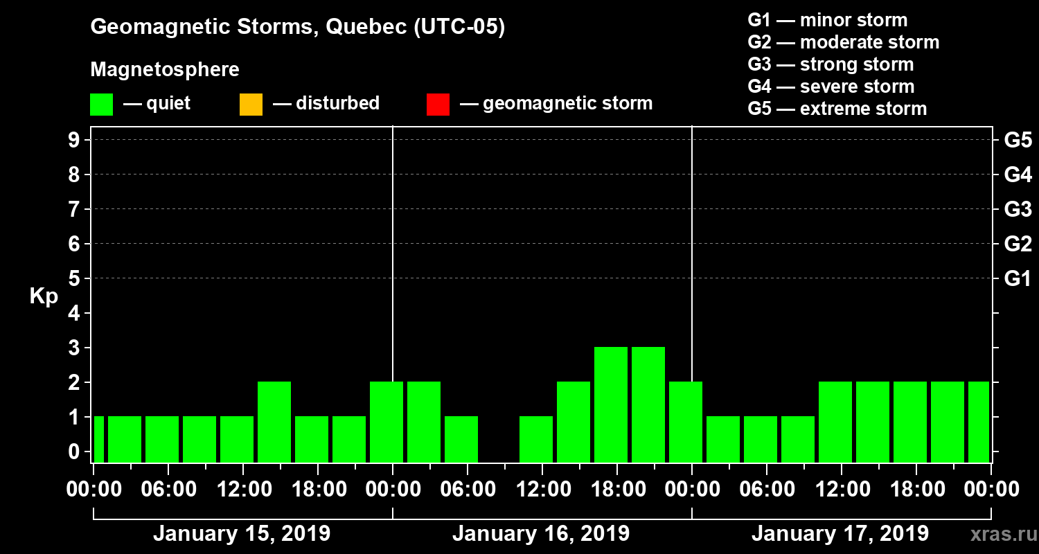 Geomagnetic storms in Quebec on Jan 17, 2019