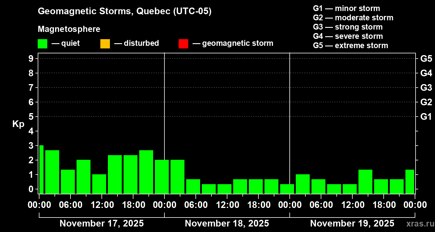 Geomagnetic storms in Quebec on Nov 19, 2025
