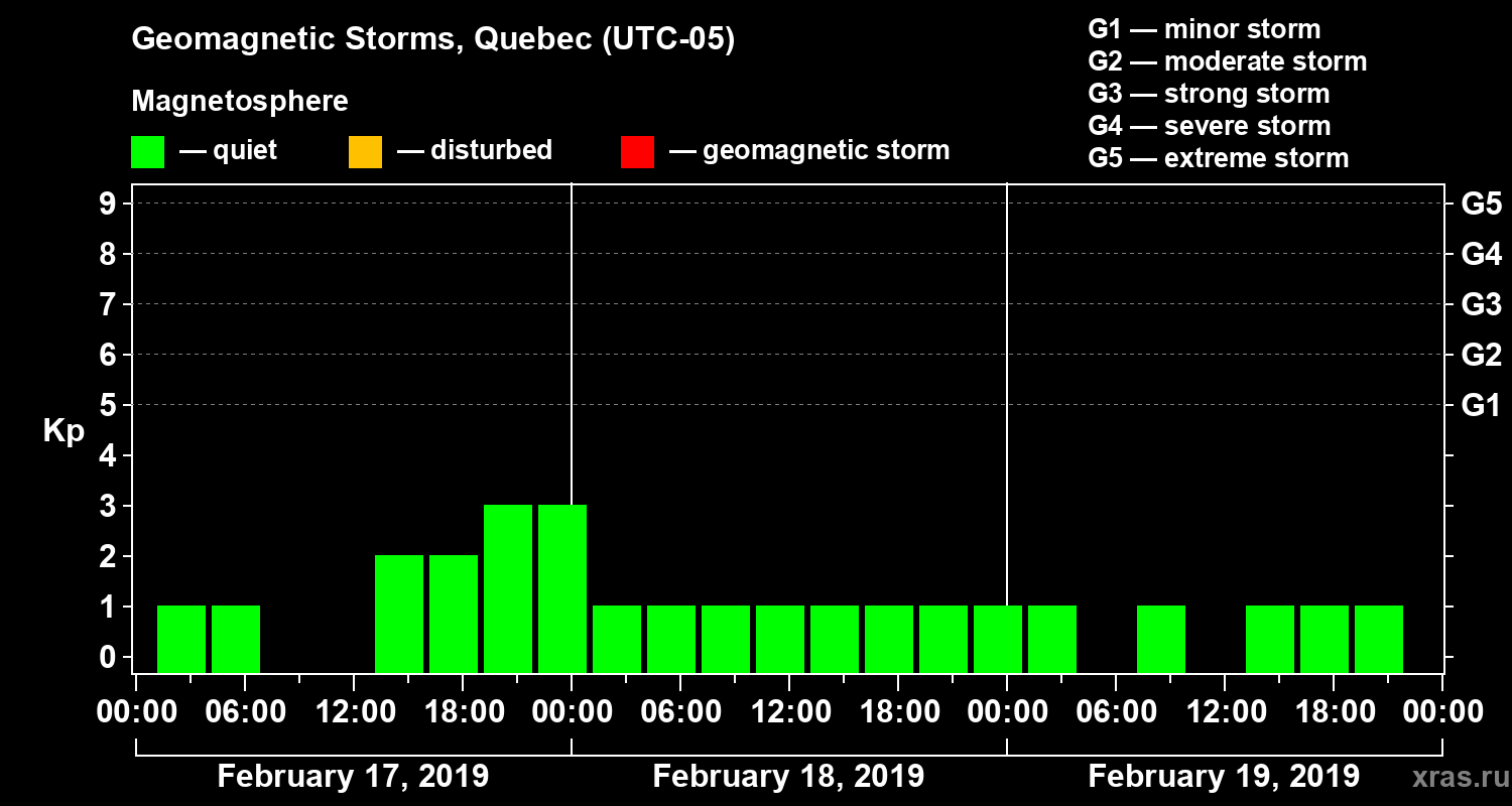 Geomagnetic storms in Quebec on Feb 19, 2019